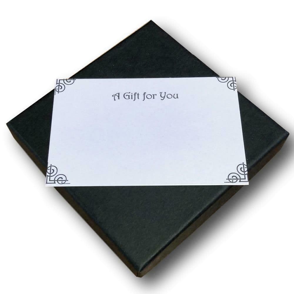 Packaged in a hinged gift box as shown. Also, included is a separate gift card for you to write your own special message.