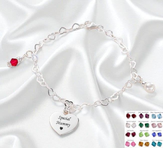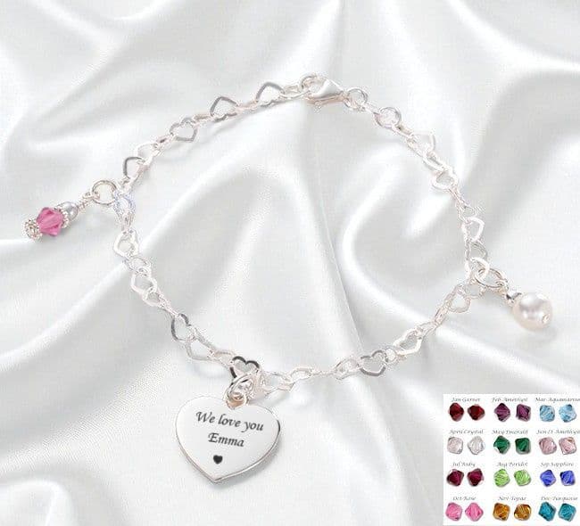 .925 Sterling Silver Fantasia Birthstone Bracelet with Engraving.