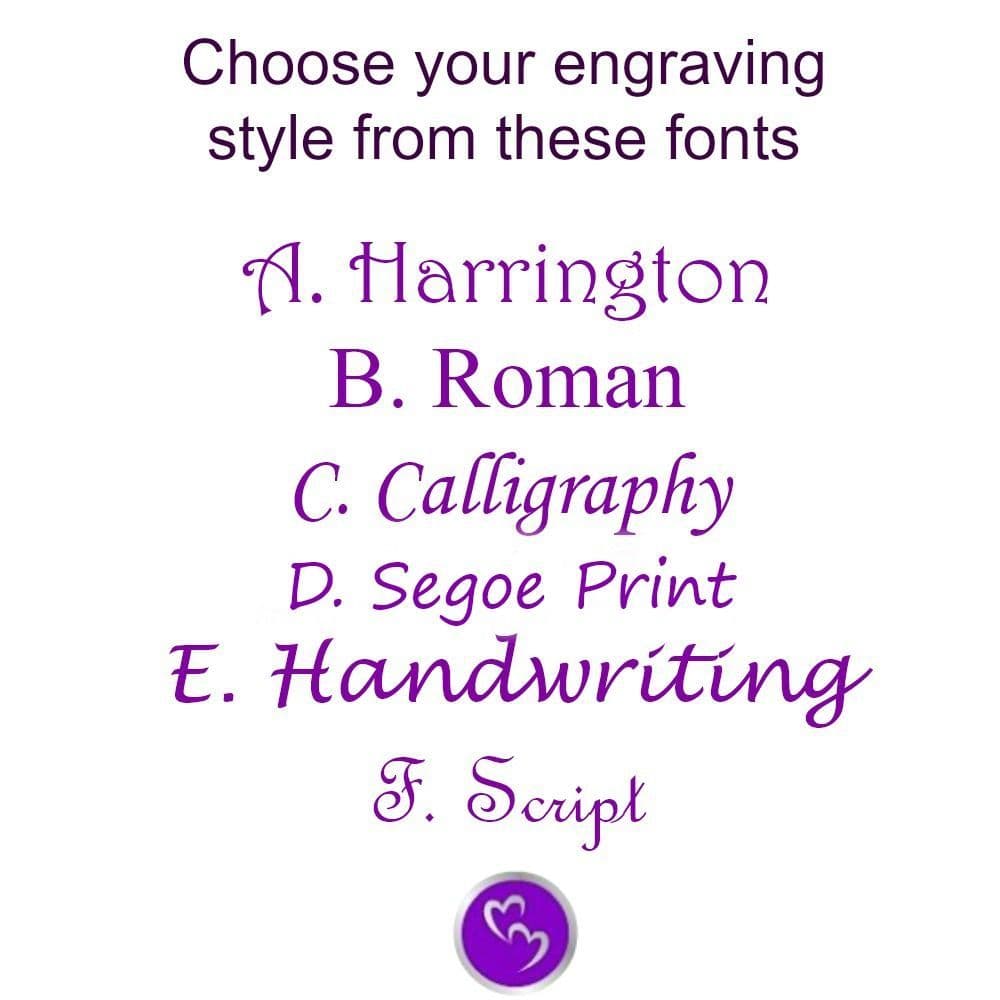 We can engrave a maximum of 25 characters per side on the heart charm.