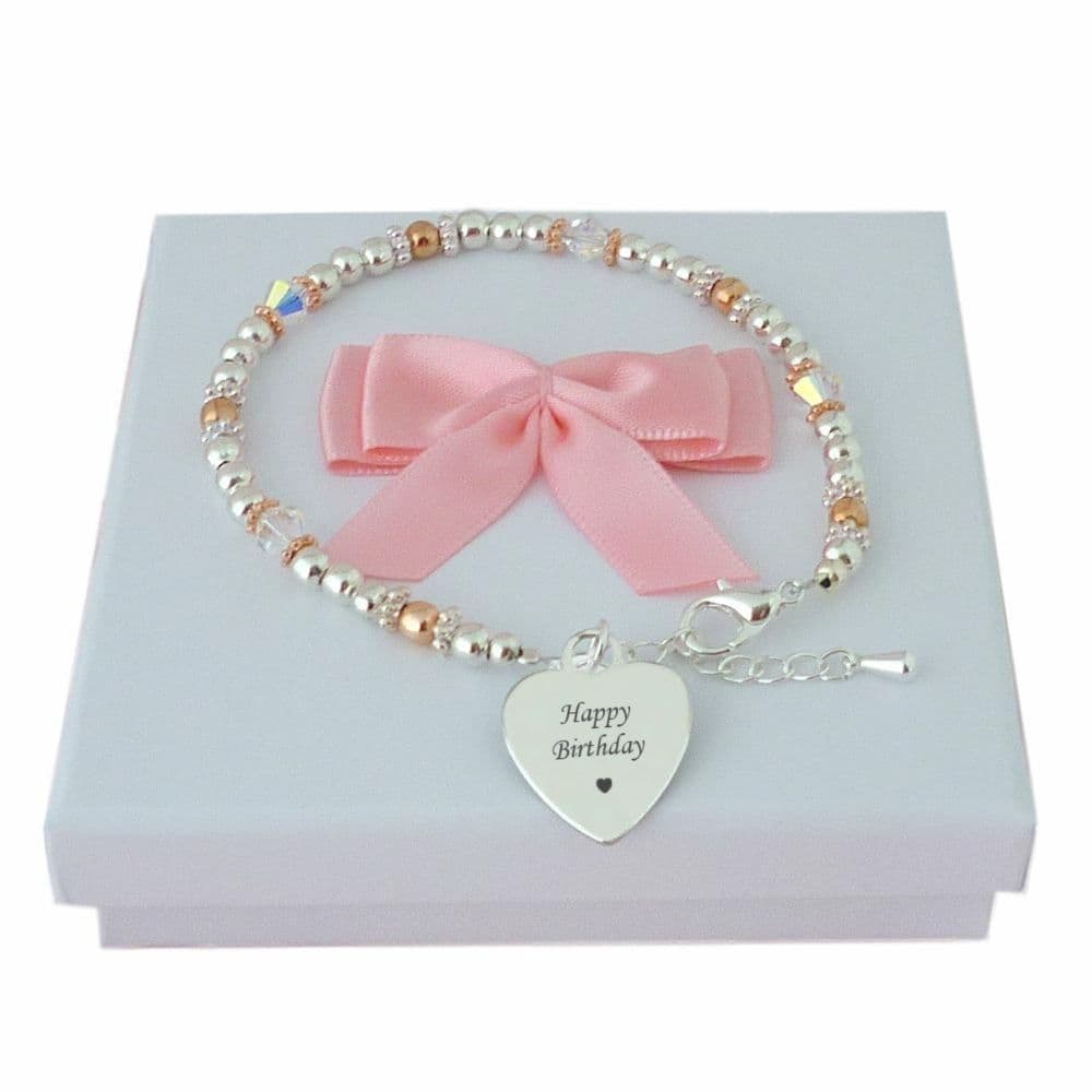 Beautifully handcrafted with 4mm round beads and Preciosa crystals for a high quality bracelet ideal to give as a personalised gift to someone special.