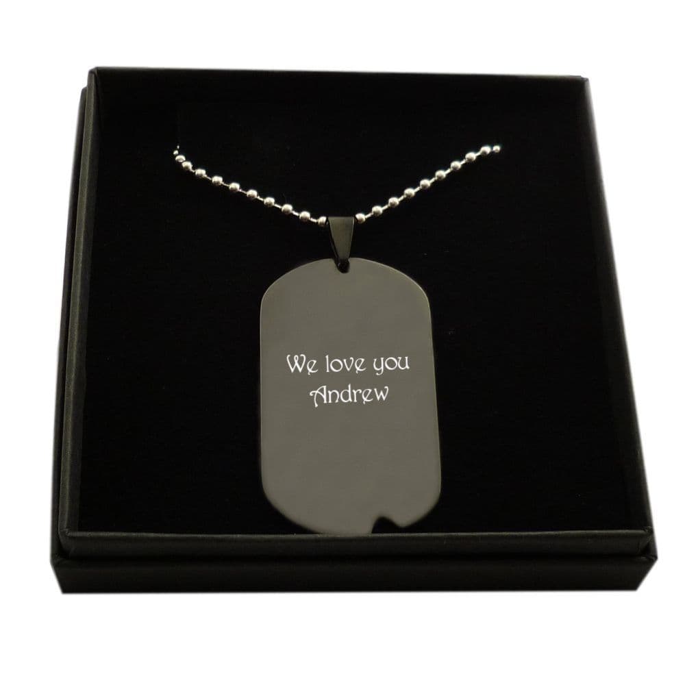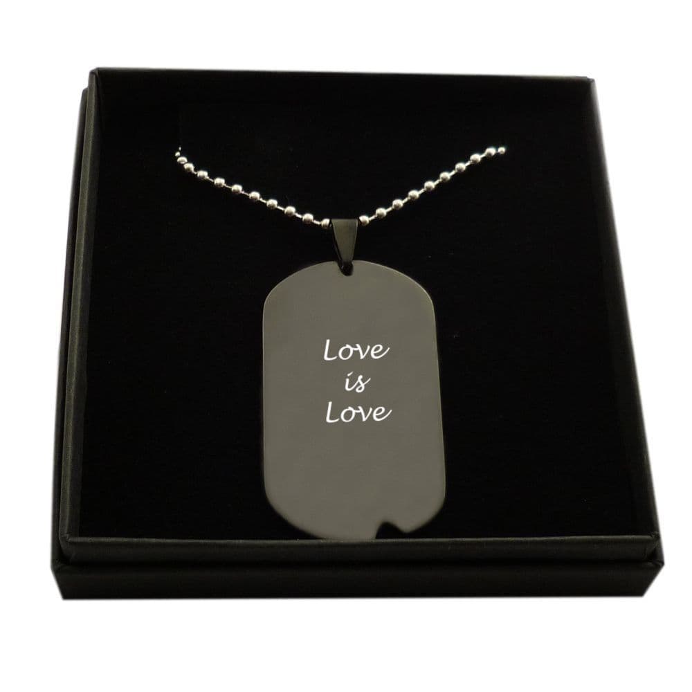 Engraved, Gift Boxed, Black Dog Tag Necklace, Personalised for Men, Women, LGBTQ, Gay, Pride