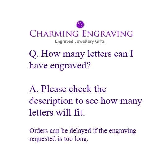 Visit our Jewellery Engraving ideas page if you would like a little help with deciding on the right words and to see our recommendations on how to ensure your engraving looks its very best.