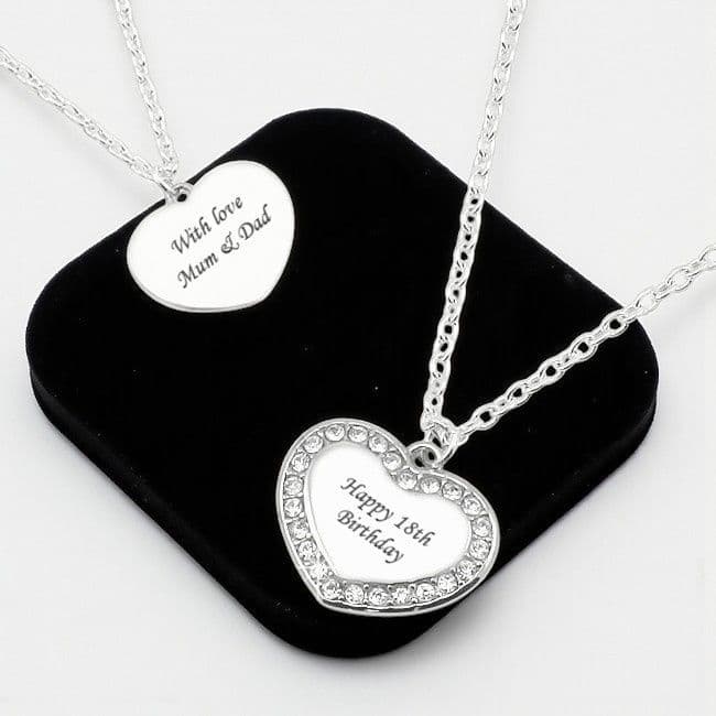A lovely necklace with your own choice of words engraved on one or both sides, framed by sparkling crystals on the front.