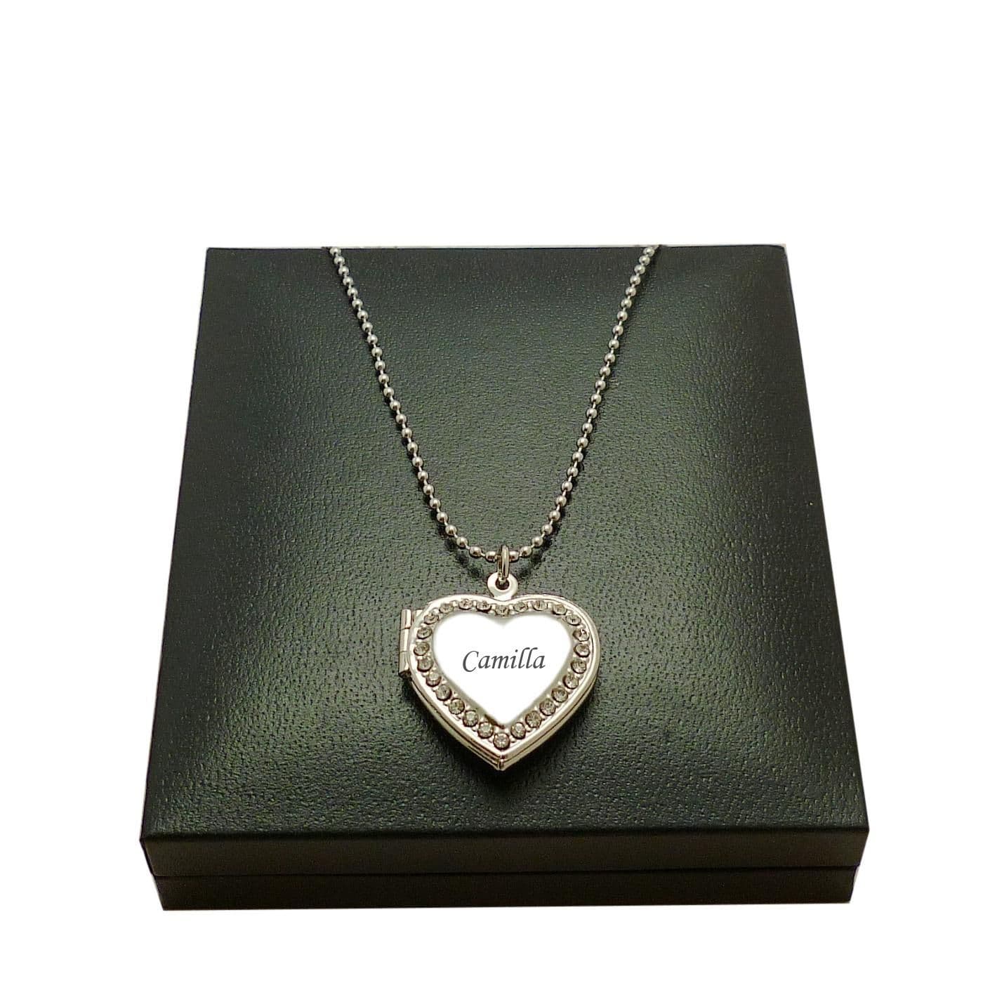 Up to 20 characters can be engraved (including spaces) on the front of the locket.
