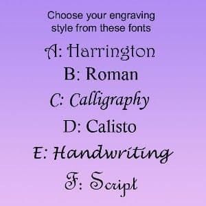 We can engrave a maximum of 25 characters on each side of this charm (please include spaces).