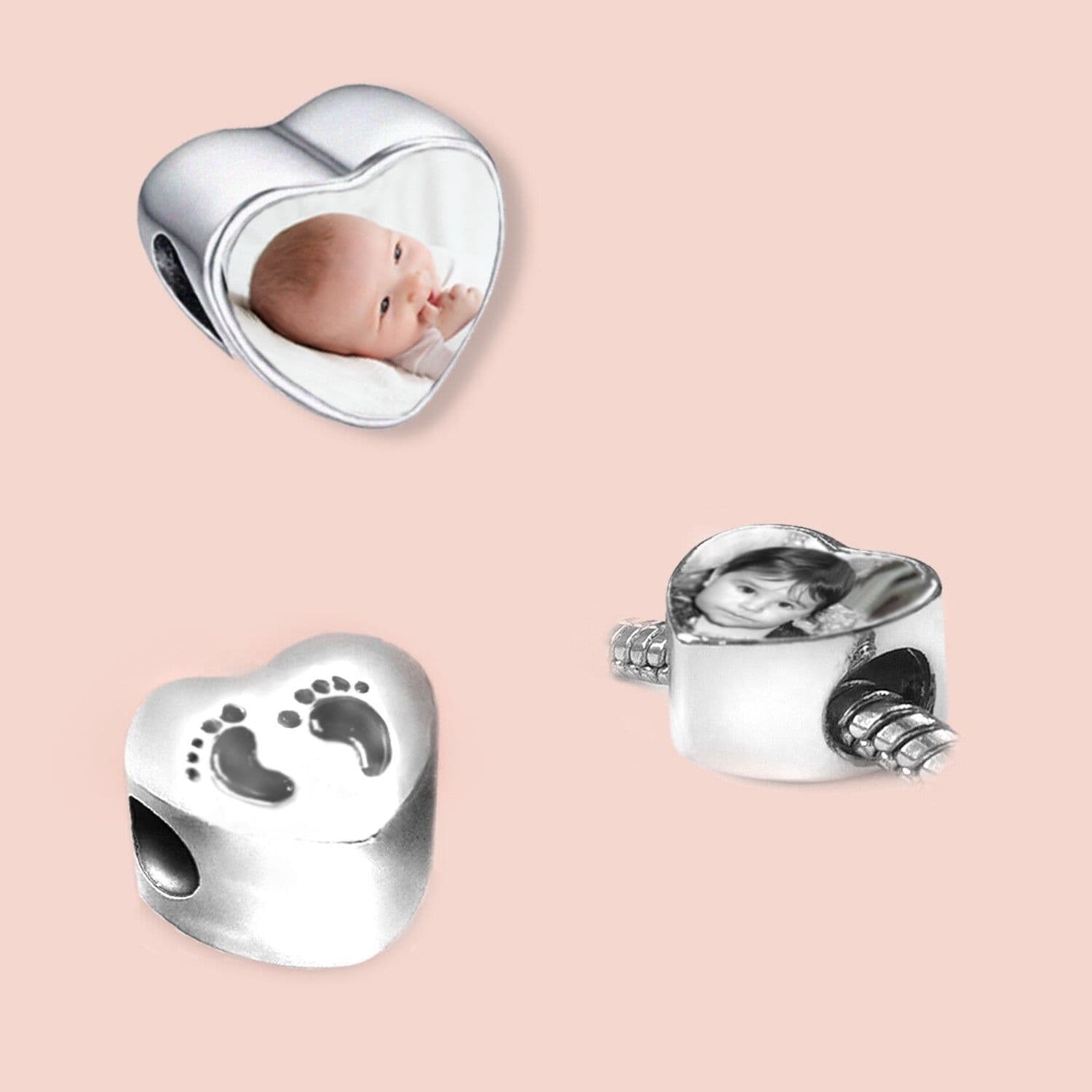 Recently added to our website, we have these very popular Baby feet photo heart charm beads, suitable for Pandora style and most popular snake chain bracelets. These can be made with any photo of your choice, subject to the guidelines below.