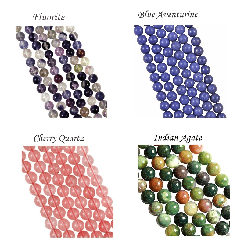 Choice of gemstones: Blue aventurine, Indian agate, Cherry Quartz, fluorite.